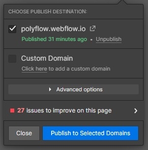 The first step is to publish your project in Webflow, so we can get all the HTML elements.